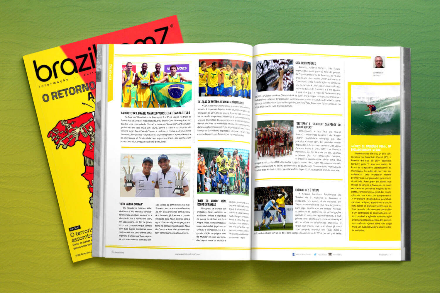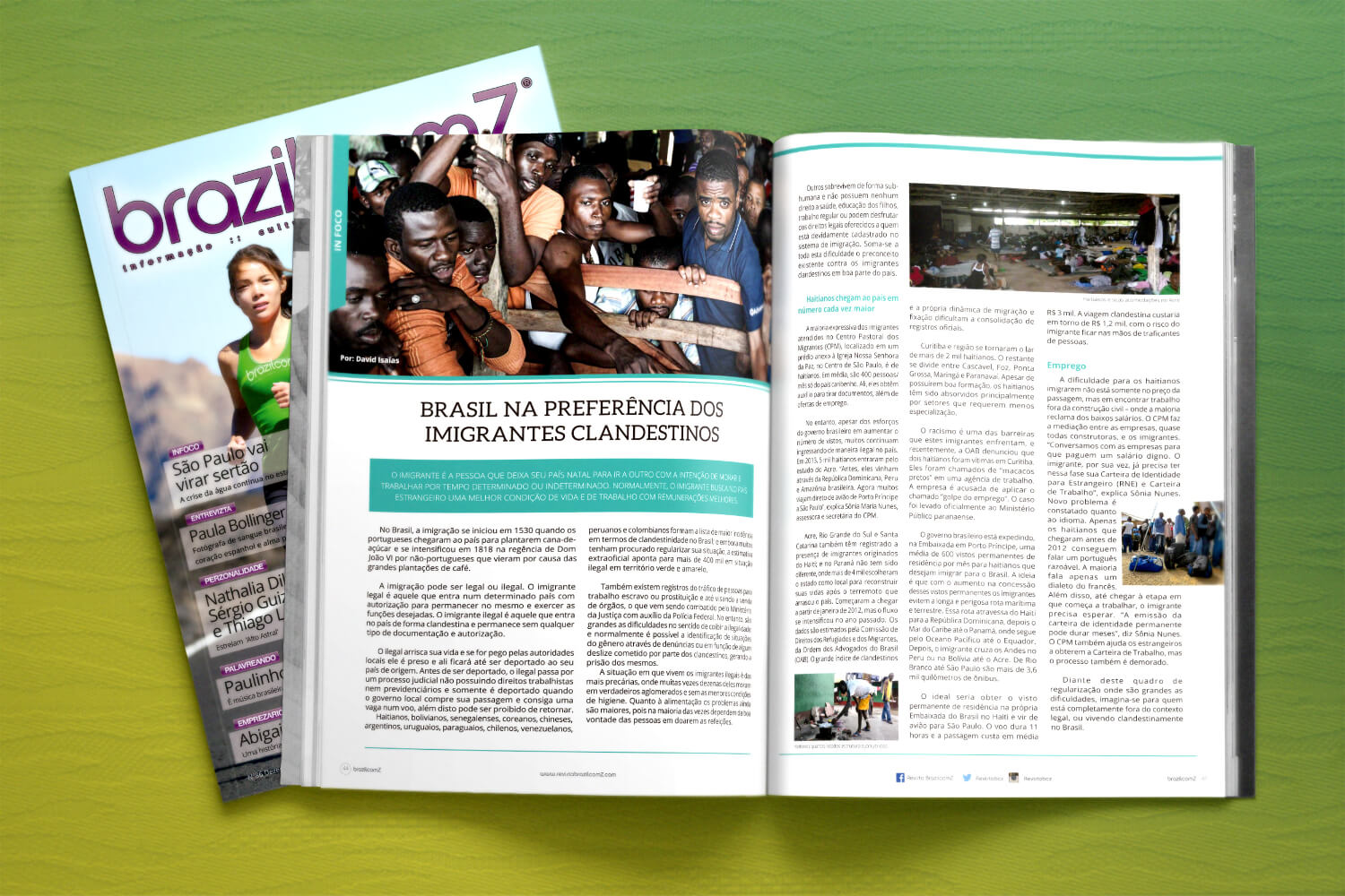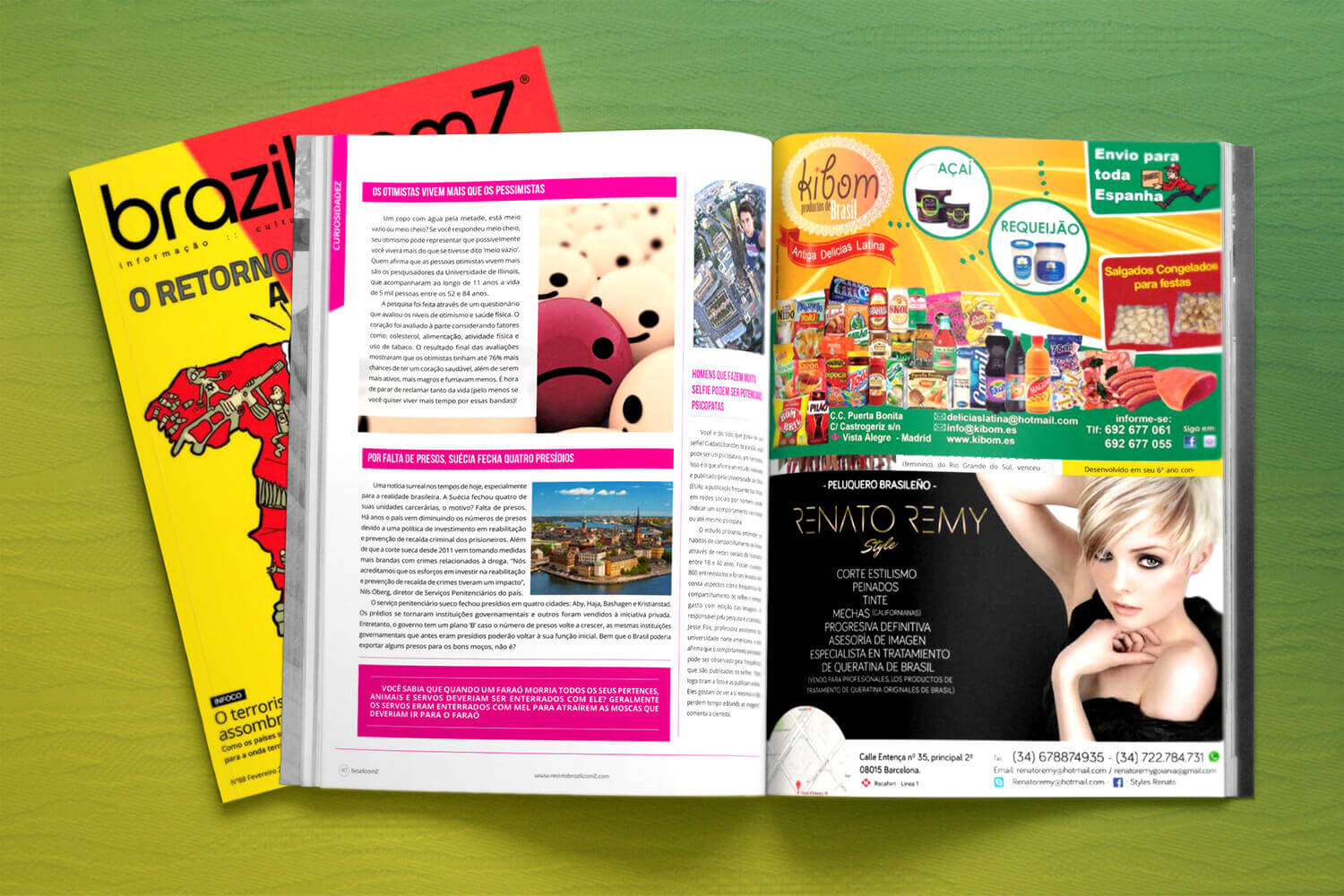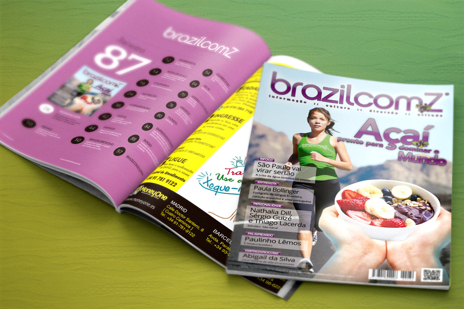 Maquetación de varios números de la revista para la agencia madrileña Kreative Work. BrazilcomZ es una publicación de actualidad dirigida al público brasileño, especialmente los migrantes residentes en España.