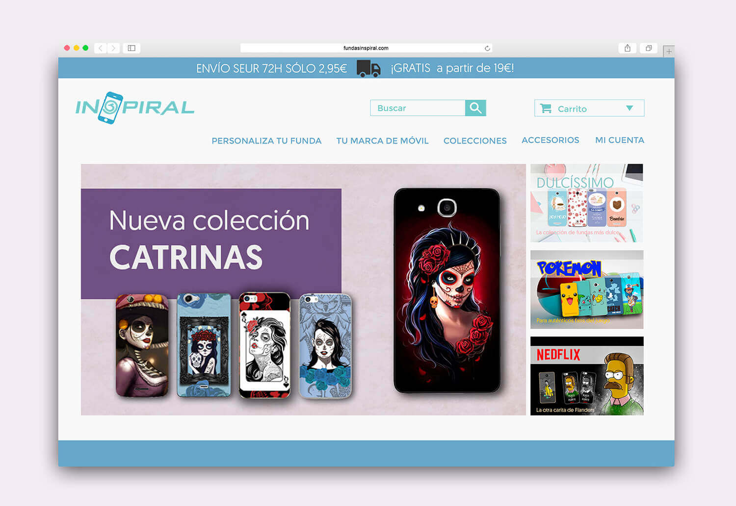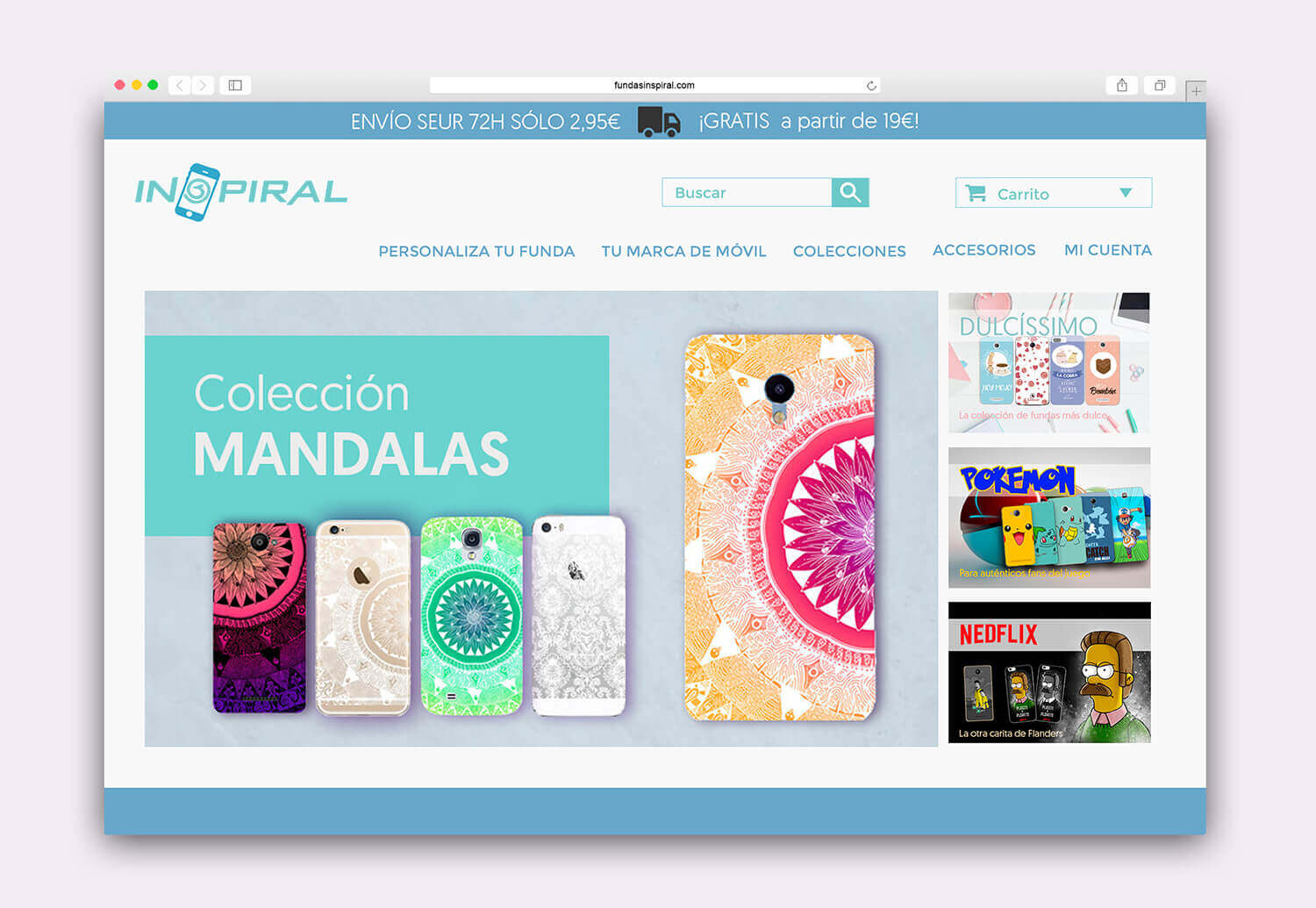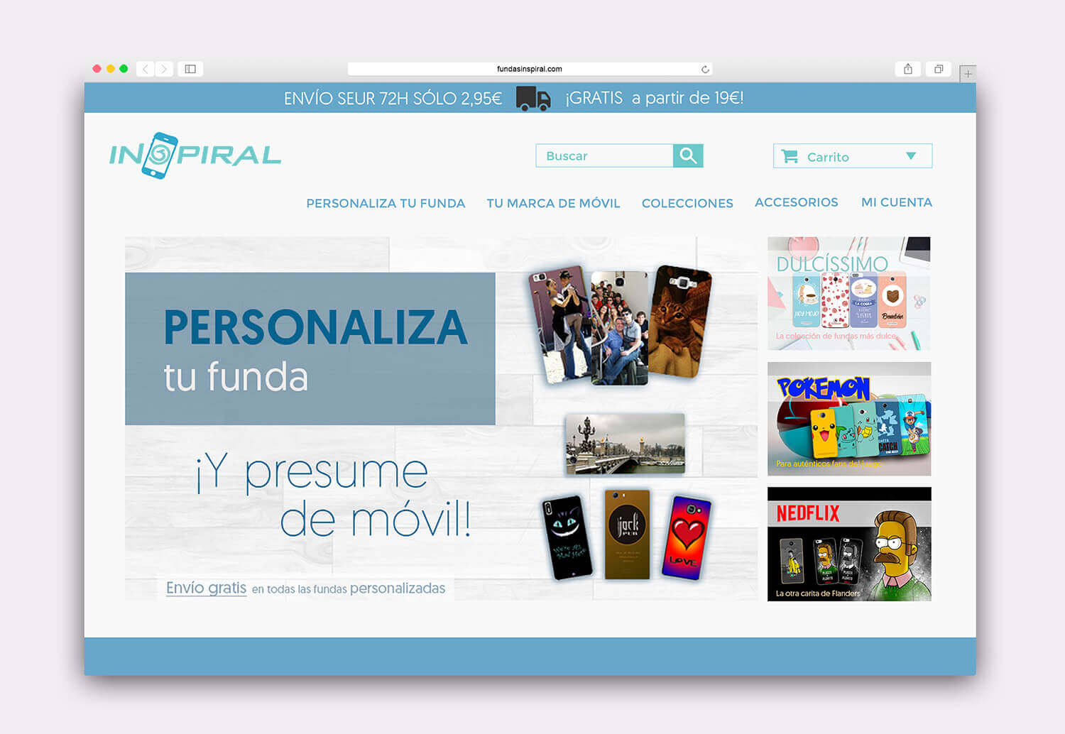 Diseño de publicidad online para Fundas Inspiral, una tienda de venta online de fundas y accesorios para móviles en la que también puedes personalizar tu propia funda con tus fotos o diseños.