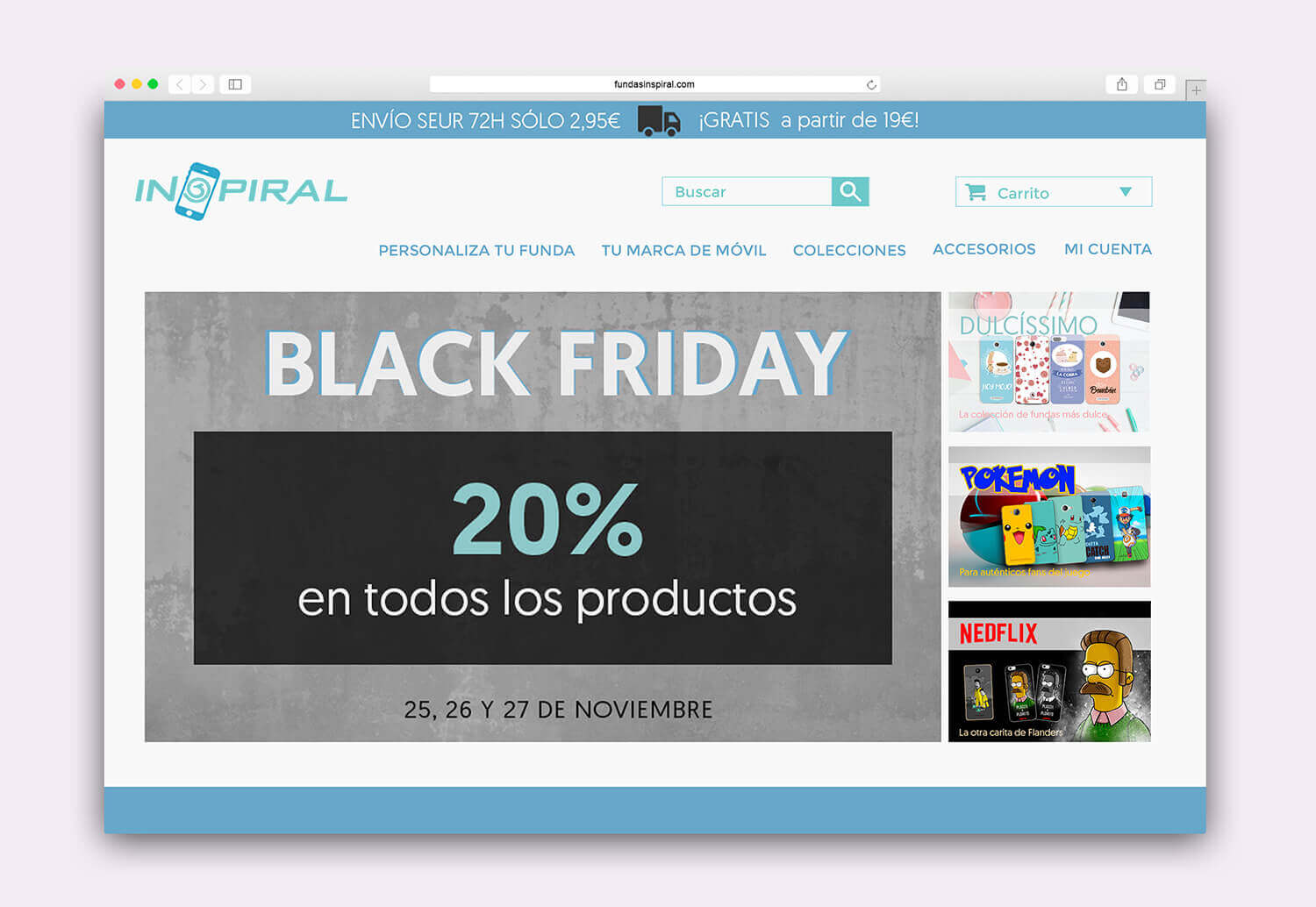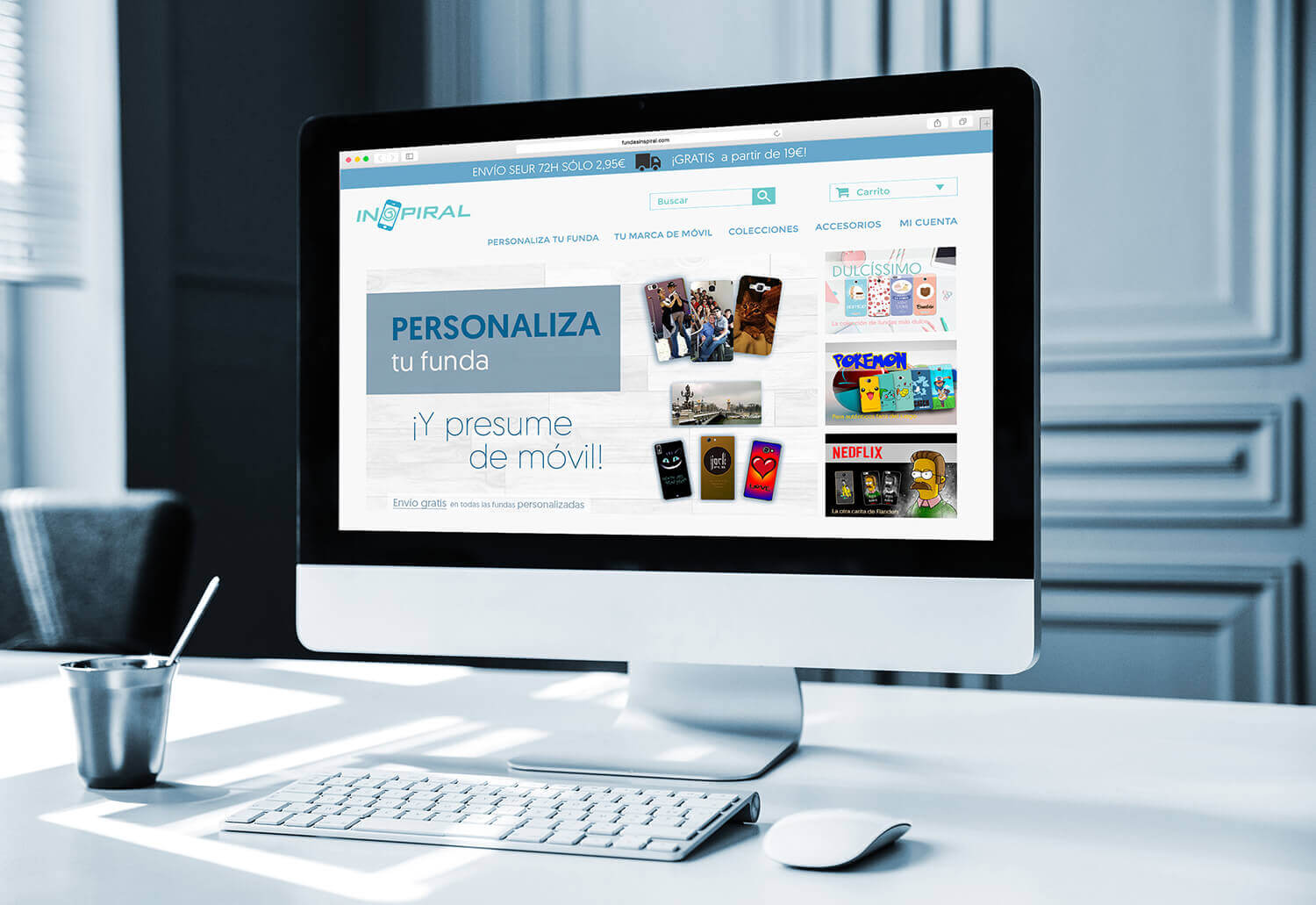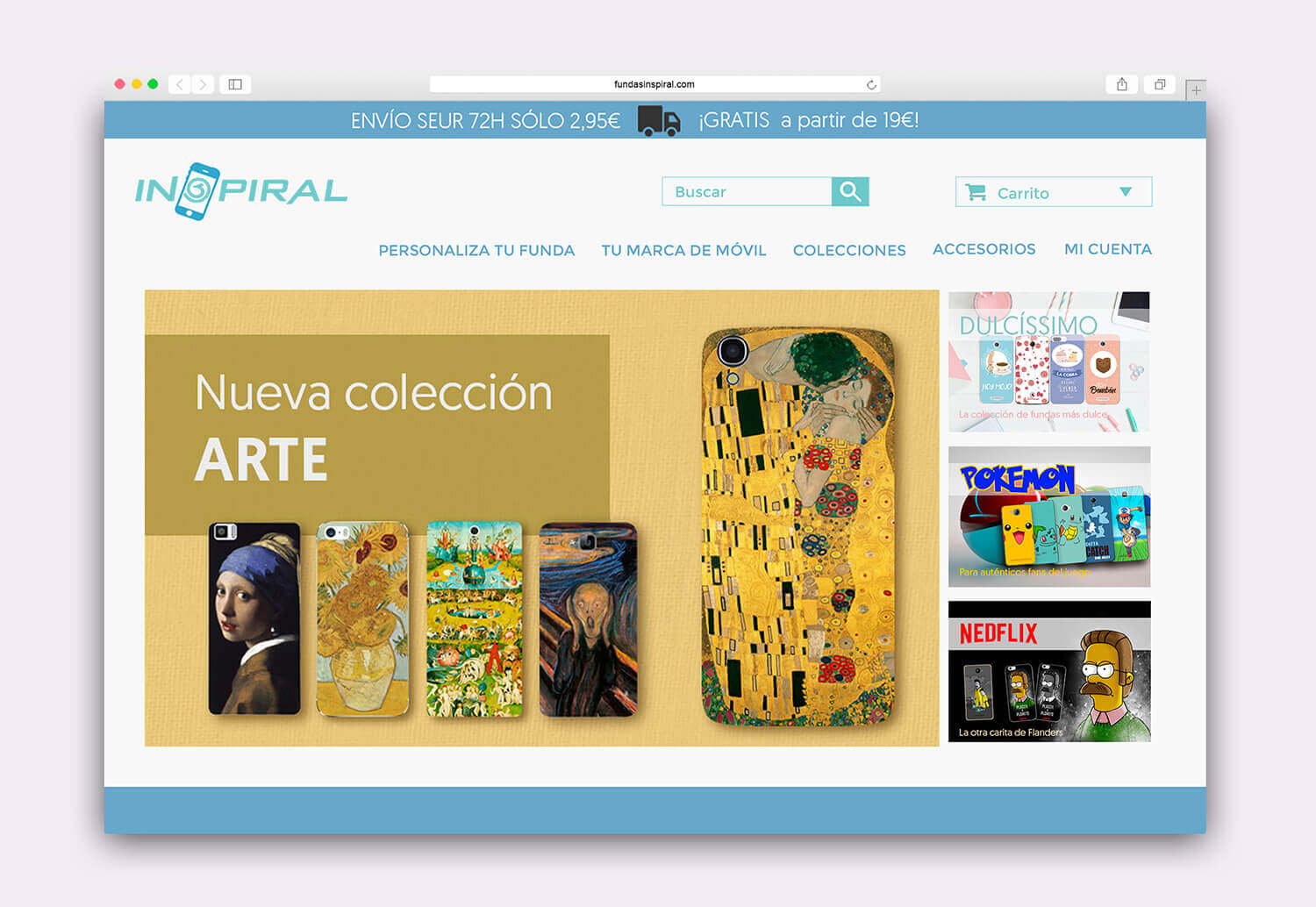 Diseño de publicidad online para Fundas Inspiral, una tienda de venta online de fundas y accesorios para móviles en la que también puedes personalizar tu propia funda con tus fotos o diseños.